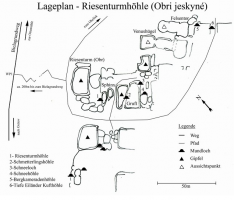 Ostrov – Obří jeskyně – Eisloch - Schwedenhöhle – Wormsmühle – Bennohöhle – Grenzplatte – Trpasličí jeskyně - Ostrov